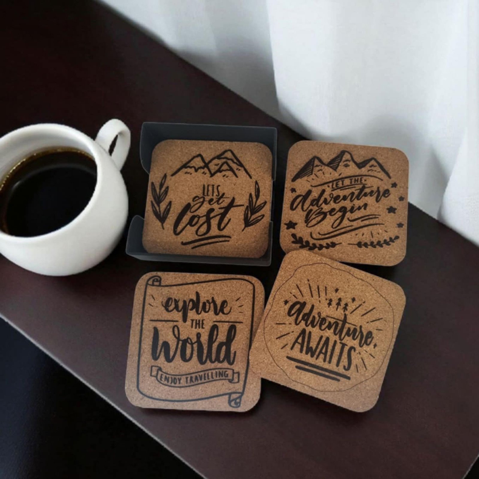 Crafted from natural cork, they’re lightweight, absorbent, and gentle on surfaces—perfect for your home, caravan, or campsite setup. Whether you’re sipping coffee by the fire or sharing drinks with friends, these coasters add a rustic, adventurous charm to any space.